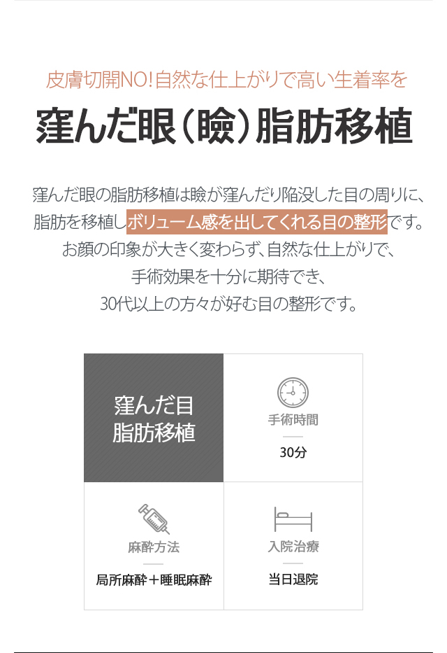 窪んだ瞼の脂肪移植